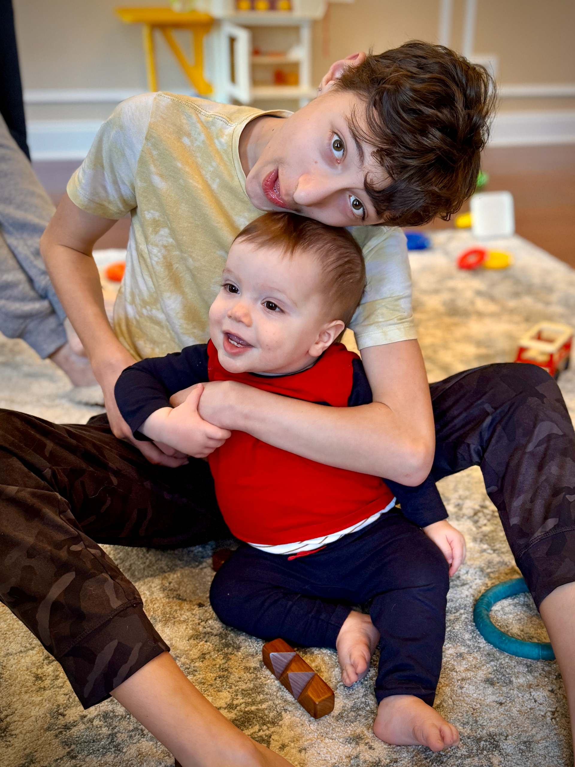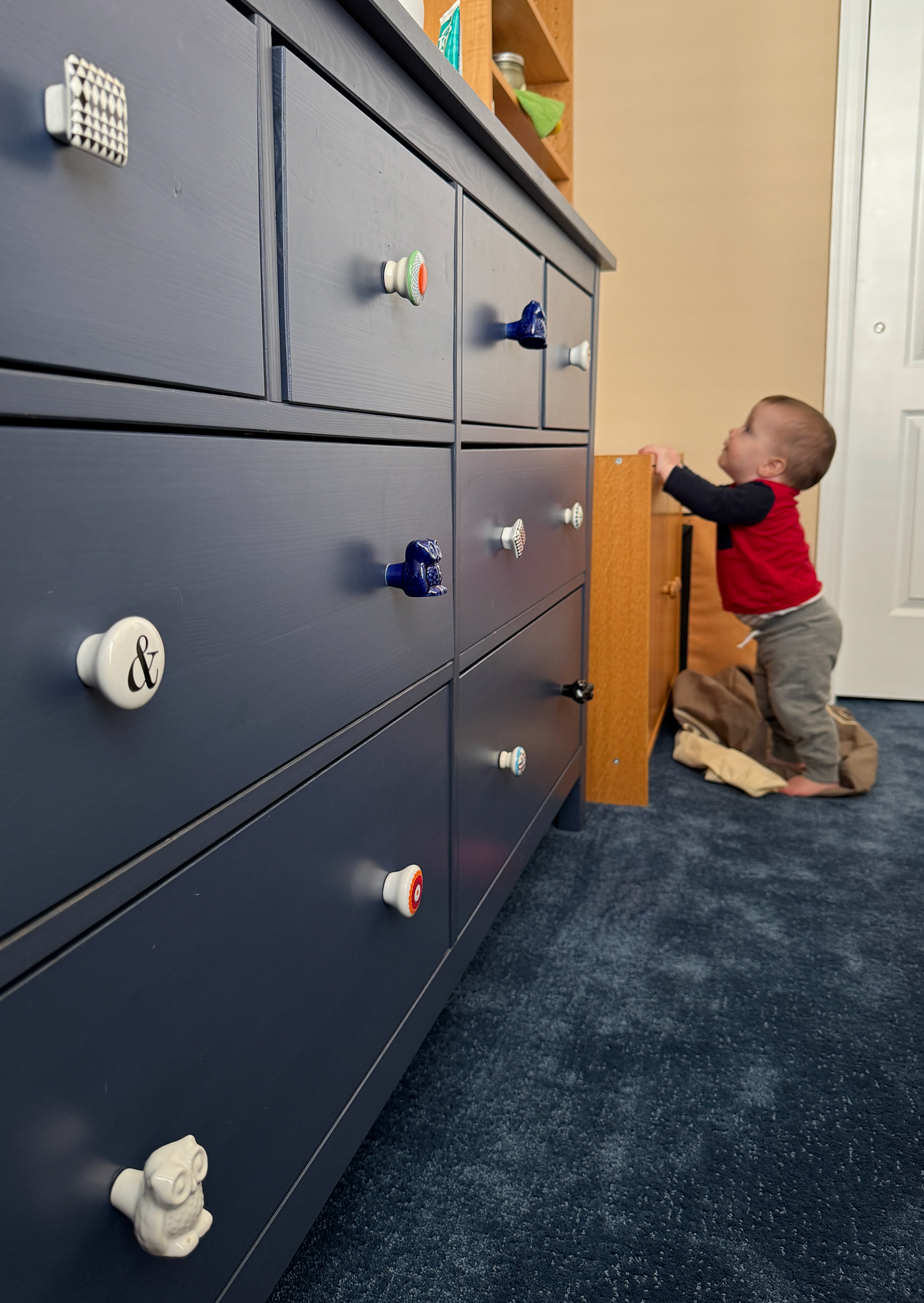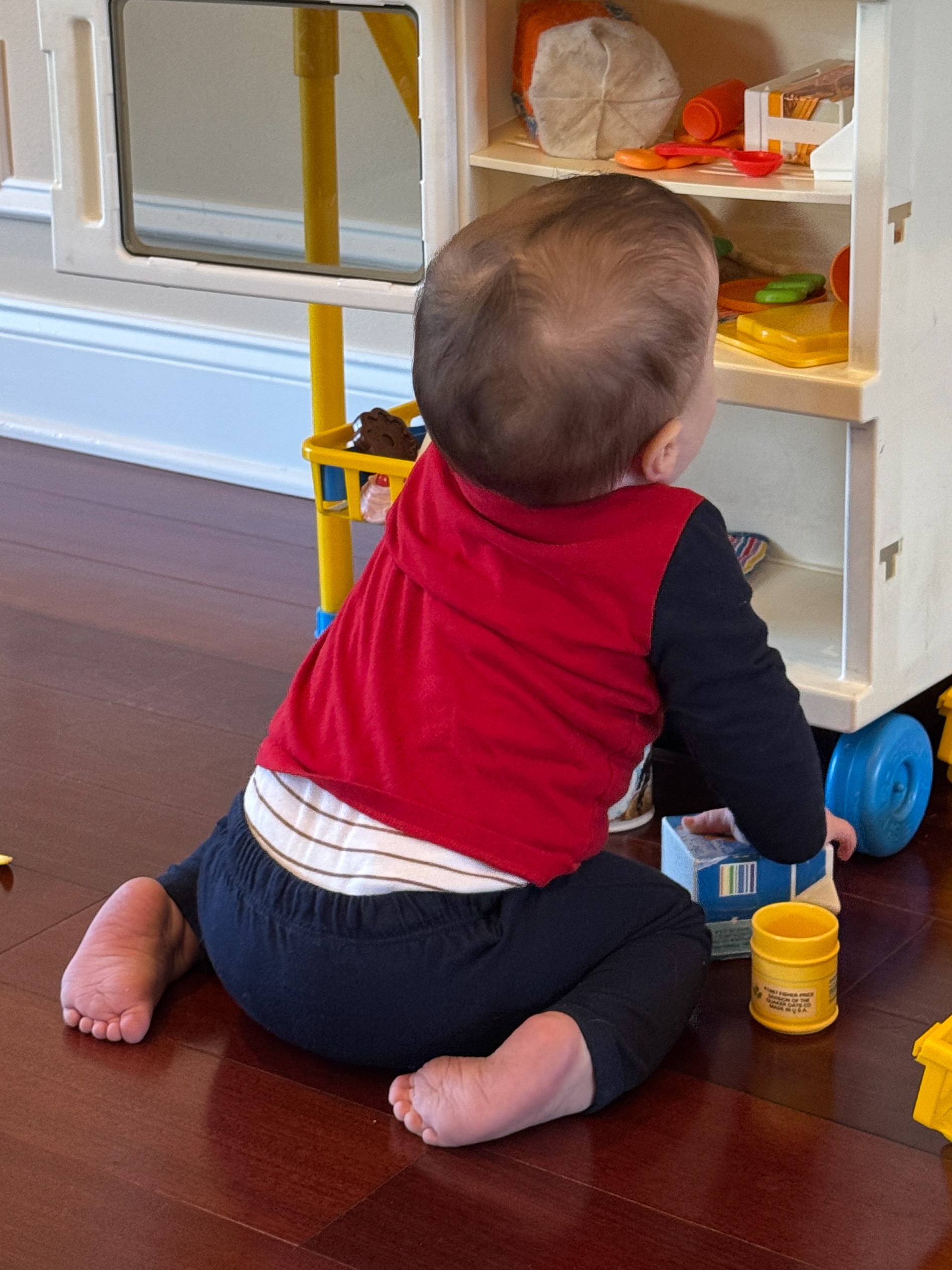 The background here is that J was playing with the old wooden pegs and dropped one down the back of his shirt!