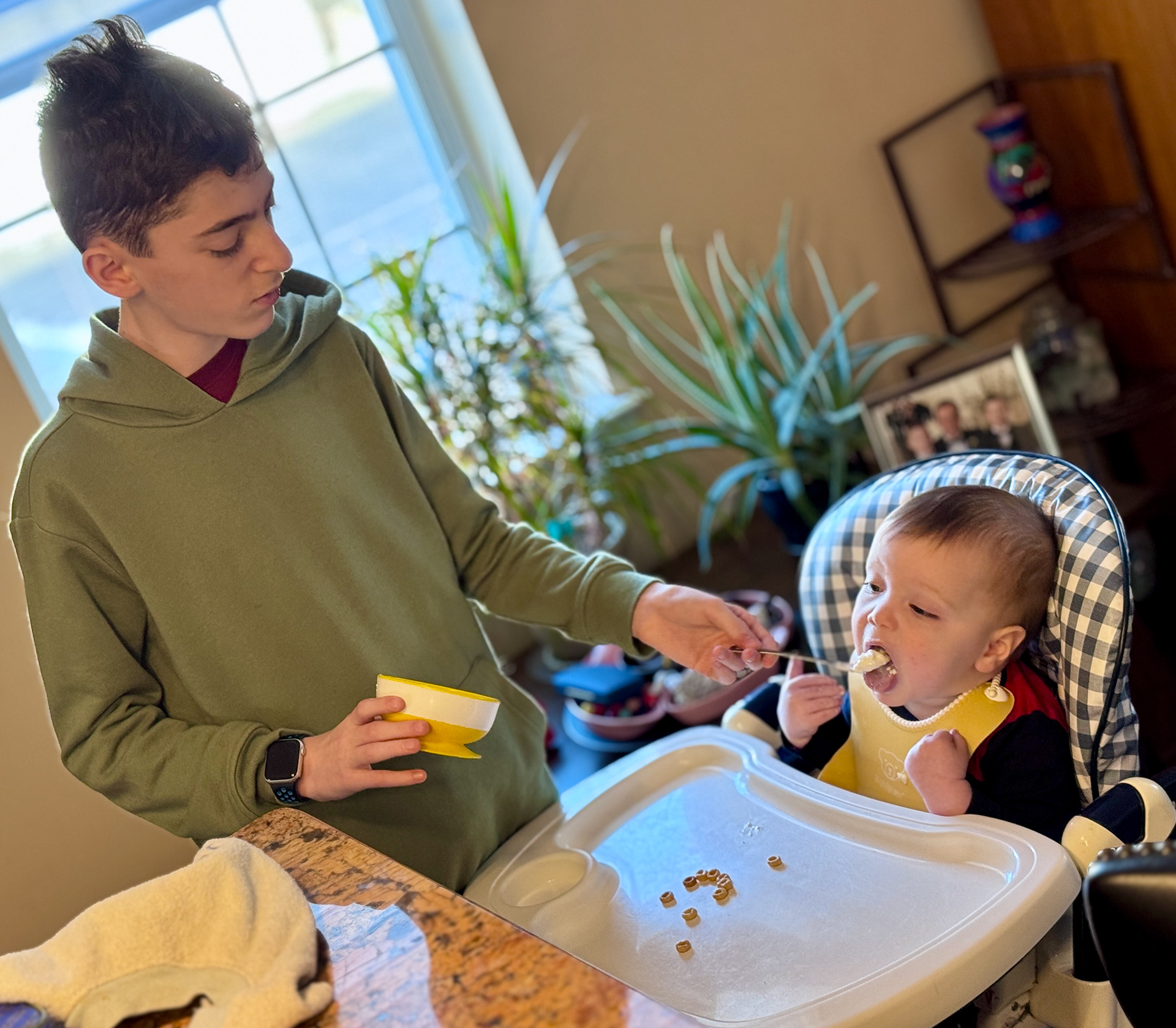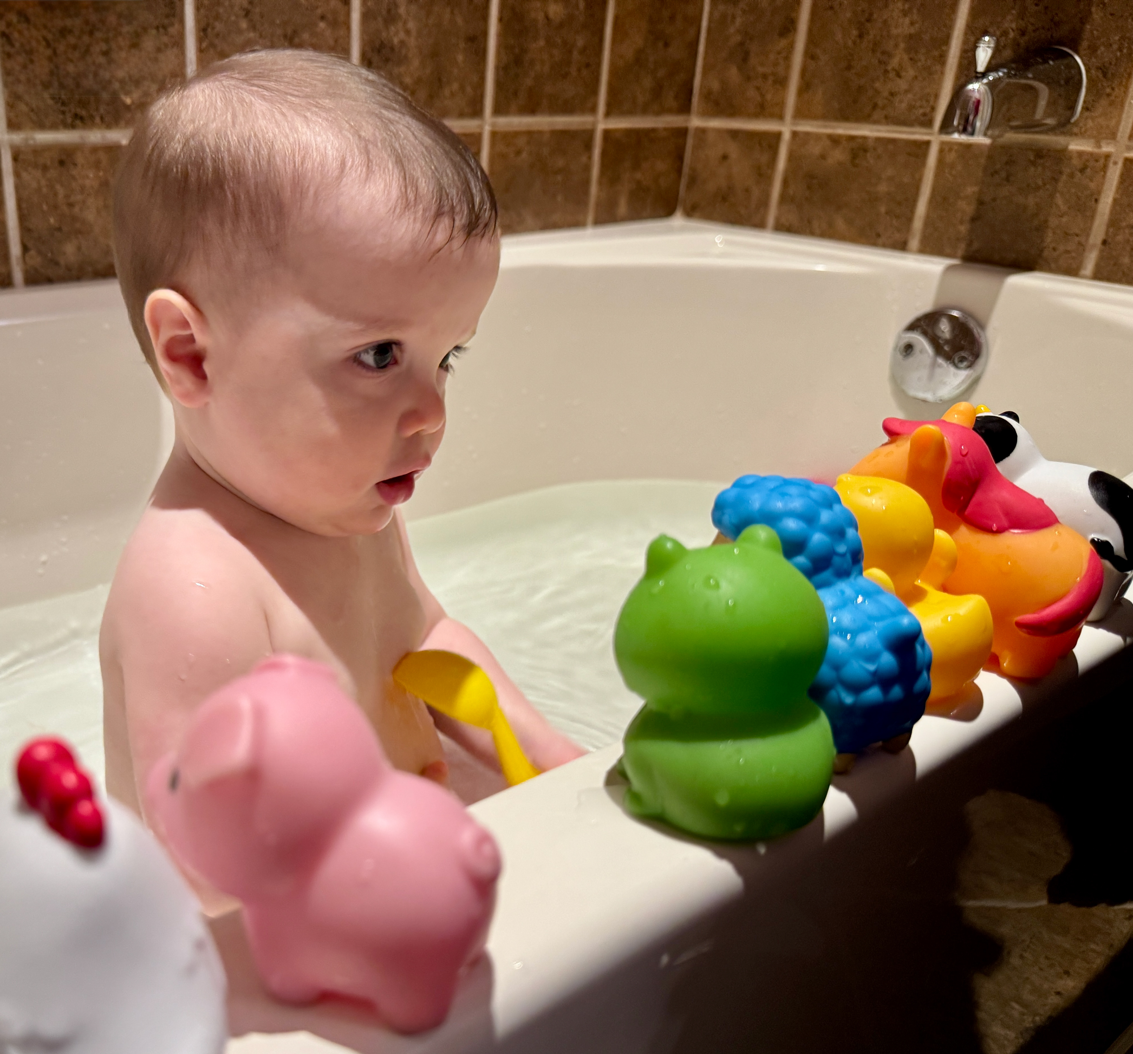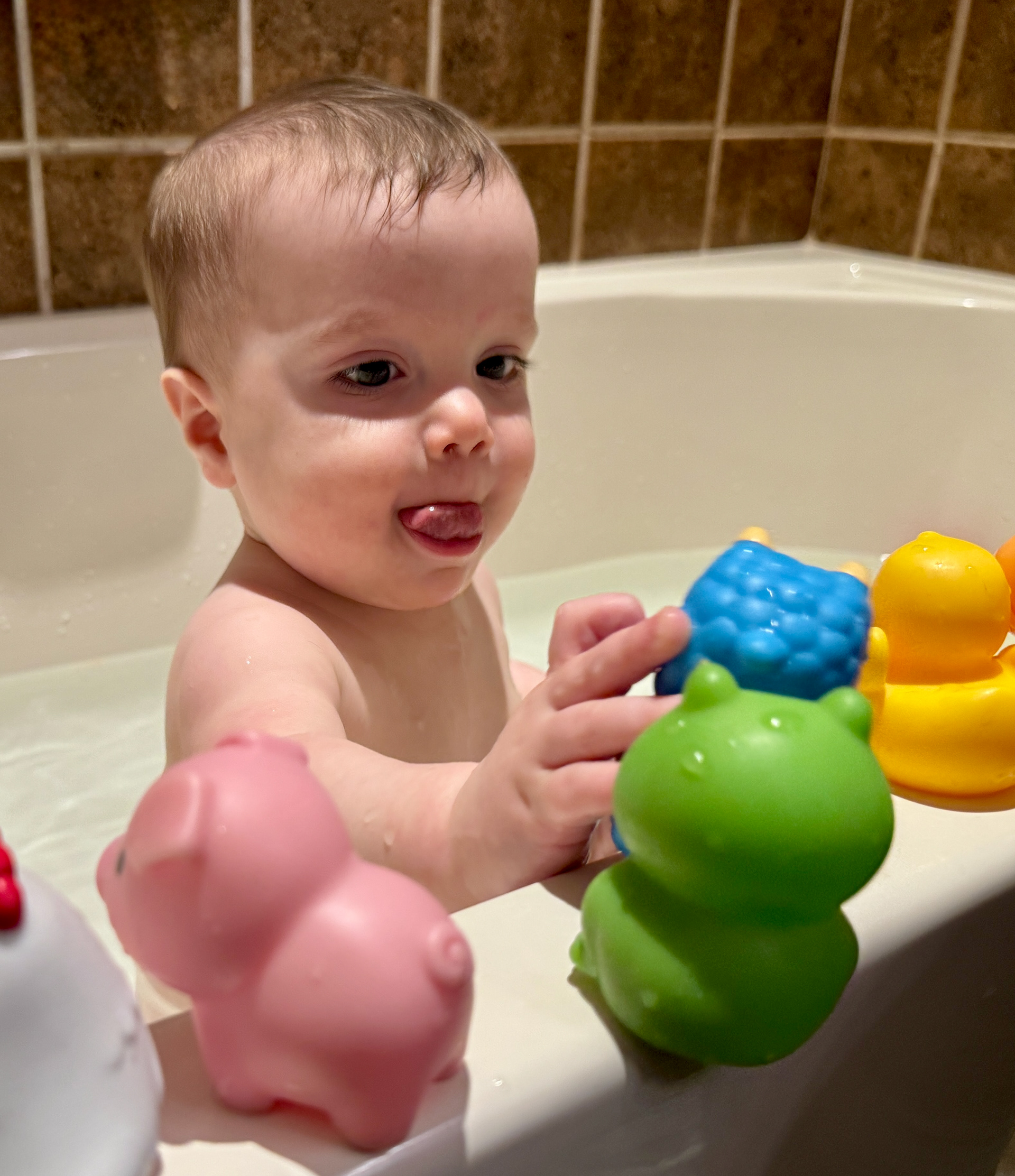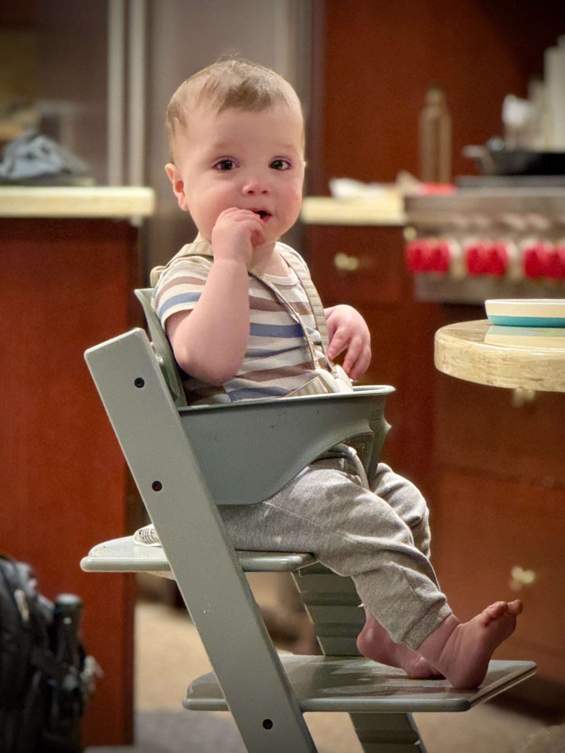 The background here is that J was playing with the old wooden pegs and dropped one down the back of his shirt!